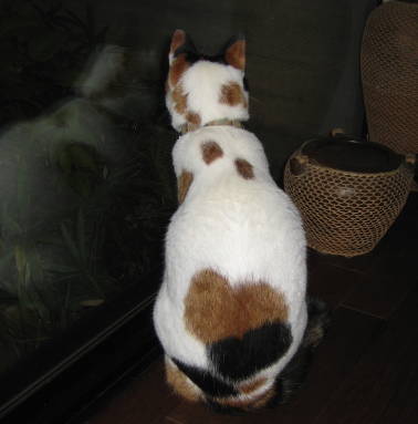 ![]() 2月12日(日) 快晴 春っぽい 「耳毛来ないかな。来たら追い払ってやるのに」 ------------------------------------ ビールを飲んでいる私の所にやって来て 頭突きをして静かに去って行こうとするなみすけの 上を向いているしっぽを後ろから軽くつかむと Uターンして戻って来てもう一度頭をなでられる。 お互いに何の意味があるのかわかっていないが、 数年の間にいつのまにか出来た 私となみすけの習慣である。 |
