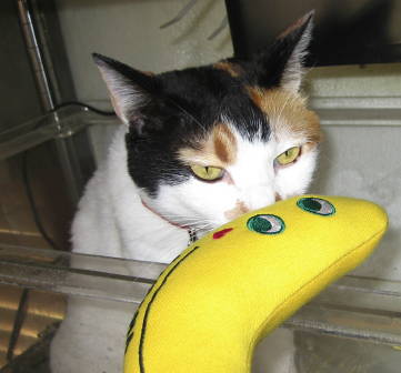 ![]() 5月18日(金) 晴 コピス吉祥寺に猫グッズのお店が出来ていて 通りかかったらバナナおもちゃが売られていたので うっかり足を止めて買う。 1年ほど前に夫が買って来て なみすけが大変気に入って、 ぼろぼろにするまで遊んだやつだ。 「なみすけ〜」と振ってみせると 亀水槽の中でゆっくりと起き上がって バナナおもちゃの匂いを嗅ぐなみすけの すでに残忍な光をたたえる目。 なみすけ、これをおまえにやるから 当分これで遊びなさい。 |