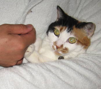 ![]() 5月21日(月) 曇り 膝なみすけ。 ------------------------------------ さあ、猫が吐く話を書きますよ。 バルコニーに猫草が置いてあって 洗面室から外に出て私が取って来る事を すぐにおぼえたなみすけが 毎日洗面の扉の前で張っていて 「猫草!猫草!」とアピールする。 昨日はうっかり食べ過ぎたなみすけが 廊下で「かっ。かっ」と言い始めて 猫草を「かぽ」と吐いた。 ああ、はいはいと私が片付けてやるのを 少し離れて見ていたなみすけは 「へいきだ!」と身を翻して走って行って 居間の日向でごろんと横になったが 抱き上げてみると足の裏が 汗でしっとり湿っていました。 |
