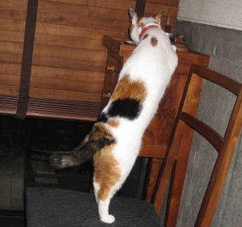 ![]() 8月9日(木) 快晴 なにかが気になって伸びるなみすけ。 ------------------------------------ 夫とビールを飲んで晩御飯を食べて 空いた食器を運んでテーブルを拭いて キッチンを片付け終わって振り向くと 食べ過ぎて自分の部屋まで帰れなかった夫が 居間の寝椅子で古新聞を枕に にんまり笑って眠っている。 数メートル離れた椅子にはなみすけが これも眼を閉じて丸まっているが どこか夫の存在を意識している。 夫も猫も、もう閉めるので上行って寝なさい。 |