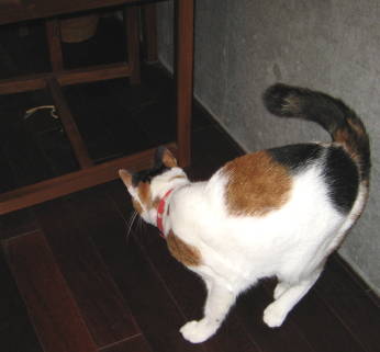 ![]() 9月15日(土) 晴 気付いていないと見せかけてすばやく転回する なみすけの視線の先にはメロンのヘタ。 ------------------------------------ なみすけがおもちゃ箱に前脚を突っ込んでいるので 「やっぱりメロンのヘタかな」と言うと夫が 「捨てたぜ。昨日」 「えっ」 「階段に落ちていて踏んでびっくりしたから」 「そう…」 とおもちゃ箱に頭まで突っ込んでいるなみすけを しばらく見ていましたが、 「ない」と判断したなみすけは すたすたと窓の所まで歩いて行って 桟にはまっていたメロンのヘタを蹴り出して そのまま追いかけて走り去った。 そう言えばメロンのヘタは2個あったわね。 |