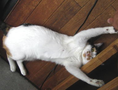 ![]() 10月16日(火) 晴 寝椅子の上から夫にちょいちょいとじゃらされて 床にひっくり返ったまま遊ぶなみすけ。 ------------------------------------ おろしたばかりのピロケースにその日のうちに 長径20cm超の大穴を開けられる。 夫に事情を聞いたところ、休日の午後に かまえかまえとやって来るなみすけに 「俺忙しいから今、遊べない」と言って 地下室に行って扉を閉めてプラモに熱中する事数時間、 自分の部屋に戻って来たら仕事が終わっていたそうです。 |