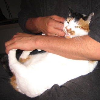 ![]() 12月25日(火) 快晴 夫と晩御飯を食べているときに ちびこCが庭に現れたので 夫になみすけの身柄を確保してもらって 扉を開けて猫おもちゃで少しじゃらしたら するっと入って来たちびこC。 抱き上げてなみすけに近付けてみたら ハナをくっつける猫挨拶をしそう…に見えた瞬間に なみすけが「キシャー!」と威嚇して、 ちびこCも「帰るもう帰る」とじたばたしたので 「ちびこCごめん」と言いながら あわてて外に出してやった。 やっぱりだめだったねえ。 写真はその後夫と私に 「なみすけ心せまーい」「心せまーい」と言われて とてもおもしろくない気持ちのなみすけ。 |