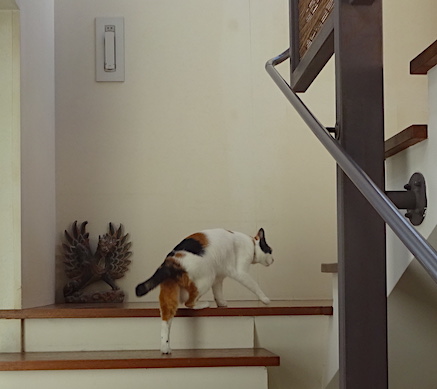 ![]() 8月20日(日) 快晴 夫とビールを飲んでいると なみすけのシルエットが階段を降りて来て 立ち止まって中庭越しにこちらを見ていたので 「なみすけ来た、めずらしいね。こっちおいで」 「おいで」と振り返って夫も声をかけましたが なみすけが動かないので 小声で夫と相談した後で夫が短く 「ちゅーる」と発声して 私が立ち上がってちゅーるの収納場所に向かうと なみすけが早足で走り込んで来ました。 なみすけはわかっています。 なみすけはちゅーるをもらいました。よかったね。 |