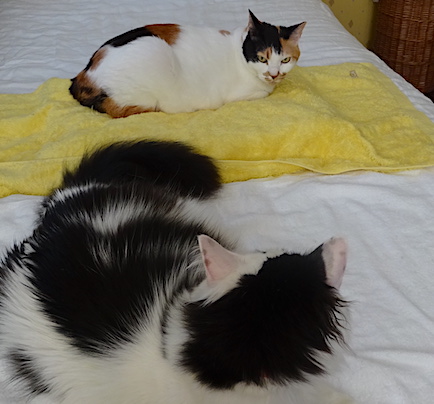 ![]() 9月12日(火) 快晴 なんとかなみすけとの距離を じりじり詰めていこうとする文。 1メートルくらいのところから なみすけの顔が険しくなって 次の瞬間警告が飛ぶので このあたりになみすけによる見えない境界線がある。 しかし冬の寒い頃には2匹の距離がもう少し近くて なみすけの機嫌がいいときは 文は50cmくらいまでいけていたように思うのです。 夏と冬で心理的境界線の位置が違うのだろうか。 2匹の距離が時と共にだんだん縮まっていくという事は いまのところあまりないようです。 |