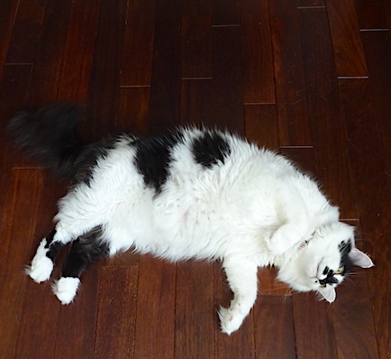 ![]() 9月14日(木) 快晴 設備機器工事の下見の人がやって来た。 なみすけは平常心でやりすごすのですが 文は工事の人が玄関に足を踏み入れた瞬間に 猛スピードで走り出す。 玄関から居間側の場所に居たときは 階段を駆け降りて地下物置の隙間に詰まる。 昨日は階段の数段上の場所に居たので 駆け上がるしかなくなって 少しだけ開けてあった私の部屋の扉を 体当たりで開けて抜けて 一番奥の収納の隙間にからだをねじ込んで 工事の人が帰るまでじっと ほこりまみれで息をひそめておりました。 細かい事は気にしない文ですが 知らない人が苦手です。 |