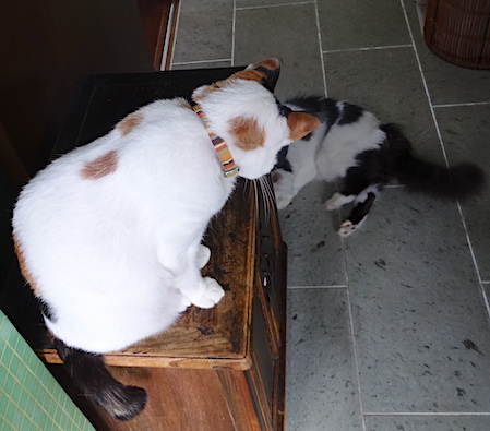 ![]() 9月20日(水) 快晴 写真としては全然ダメだが距離が近い。 だいたいは私の部屋で寝ているなみすけですが 気が向くとふっと立ち上がって 夫の部屋や洗面室や、 日が当たる場所外が見える場所に移動する。 移動の気配に文が気付いて 「なみすけさん3階に行く? 文も特に予定ないから一緒に行こうかな」と 後から走ってついて来て なみすけに怒られながら ぎりぎり許される位置を取る。 なみすけは舌打ちするような気持ちで いるであろうよと想像はするのですが、 それでもなみすけもこういう日常に もう慣れているような気もします。 |