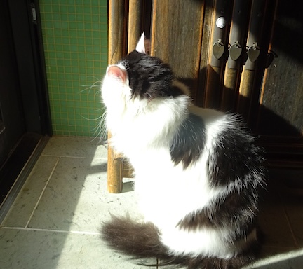 ![]() 12月2日(土) 快晴 今年もキッチンとレンジフードの クリーニングの人に入ってもらいました。 プロが入った後はシンクなど どこも格段にびっかびか。まぶしい!まぶしい! なみすけはいつもの通り 私の部屋で寝てやり過ごしていましたが 文は「わー」と階段を駆け降りて また「わー」と駆け上がって来て、 階段の上からキッチンの人の気配を気にして 時折勇気を出してちょっと下まで見に行ったり。 だんだんよその人が来ても 怖がらなくなって来ましたね。 |