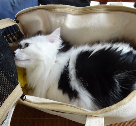 ![]() 2月20日(火) 曇り 文は病院でエコー(超音波)検査をやりましたよ。 現時点では問題になるというほどのところはないけれども 経過観察した方がいいとの事で 多分3ヶ月後くらいにもう一度病院に行きます。 腸内細菌のバランスも改善しているそうで もう数日分の薬が出されて、 後はロイヤルカナンのお高い 猫用消化器サポート(ドライフード)を 再びやって様子を見ます。 夫が文を動物病院に連れて行って 検査の間は診察室の外で待っていたそうなのですが 中からお医者さんや看護師さんの笑い声が聞こえて 終わって出て来たお医者さんが 「いい子でしたよ」とにっこりして言ったそうです。 写真は病院に連れて行こうと キャリーバッグを出したら 自分からのしのしと入って行って フタの部分の匂いを確かめている文。 |