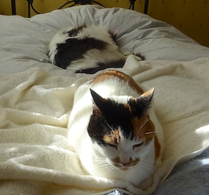 ![]() 3月16日(土) 快晴 なみすけが寝ているベッドに 文がゆっくりと近付いて行ったので これは揉めるぞと思ったら 文がいきなり立ち上がって 両前脚でふとんをぼすっと踏むと同時に 「ニャッニャーン」と高らかに声を上げて次の瞬間には なみすけの寝起きの「ブシャー」を 背中に聞きつつ逃げ去っているという ピンポンダッシュのような事をした。 そういう事をするから余計嫌われるのではないか。 |