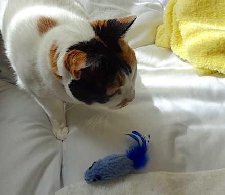 ![]() 3月25日(月) 雨 ディゲム君がいよいよ見当たらないので 猫用おもちゃをネットで検索。 なんだかヤケクソみたいな デザインのが多いなと思うが、 まあディゲム君もデザイン的に優れているかというと そういう事もなかったのだが、 中でまあこれなら妥協してもよいというのを選んで ヨドバシカメラで注文しました。商品名は 「大好きブルーのもこもこチューチュー2個セット」。 てっきり青い鳥だと思っていたら ねずみだったのだがまあそれはいい。 なみすけは遊ばないだろうなと思ったが パッケージを開ける音に反応して こちらを振り返ったので 「おみやげー」と1個渡してみたら 「ふーん」という様子で匂いをかいで ちょっとこづき回してみて、 案外まんざらでもないようなのだった。 文にもう1個を投げてやって 追いかけて走り去る文を見送って、 まあ後は適当に遊びなさい。 |
