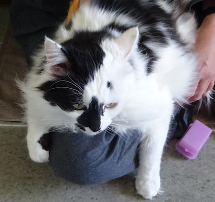 ![]() 5月7日(火) 雨 洗面室で夫が文をひっくり返して 文の両前脚を上げさせて 腹側にブラシをかけてやりながら 何か口ずさんでいる。 「猫万歳!猫万歳! 猫の王国…?に栄光?あれ?」 私に気付いて顔を上げた夫が 「まだ歌詞が考え中で きちんと決まっていないのです」と キリッとして言いました。 まあ納得が行くまでやってください。 |