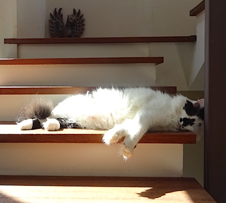 ![]() 5月10日(金) 快晴 数日前に文の腹の調子が悪くなって ときどきあるいつものやつと病院で診断されて 3種類薬を出してもらった。 当然のことながら投薬を嫌がる文を なだめながら口を開けさせようとすると 顎の力が強い文が必死で抵抗、 さらに大きいからだを最大限に利用して びっちびっちとあばれるので 人間と猫ほぼ互角の朝晩2回の真剣勝負。 腹の調子が悪い他は元気で体重はむしろ微増の文。 ロイヤルカナンの消化器サポートも注文しました。 早く治りますように。 |