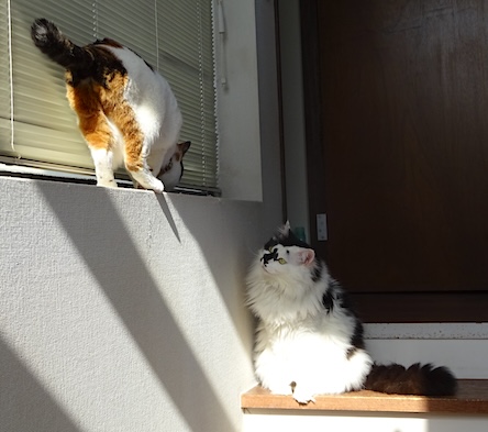 ![]() 5月18日(土) 快晴 やるべき事が一段落して 少しベッドで本を読もうと思って横になると なみすけがすぐにやって来て 枕の横のスペースを埋めて丸まる。 ややしばらくしてやって来た文が 「ニャッニャーン」と高らかに声を上げ ときどきごりっと脚を滑らせながら ぼすぼすとふとん越しに私を踏み なみすけのところまで寄って行くので なみすけが怒って「ブシャッ」と言う、 猫の戦場が私の顔の上で なかなかスペクタクルなのですが やめてください。 |