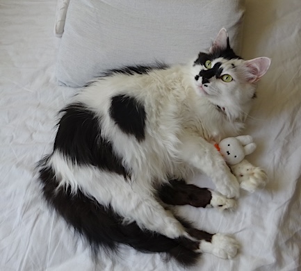 ![]() 7月17日(水) 曇り 前脚の隙間にミッフィーちゃんを置いてみたら 特に文句はないようだったけれど ミッフィーちゃんと一緒だと 文がずいぶん粗野な動物に見えるのはなぜ。 ドライフードをキッチンスケールで計る夫を 文が横からのぞき込んで 鳴き続けるのにアテレコして 夫がひとりで会話するのを 他の仕事をしながら聞くともなく聞いている。 「今計ってるからちょっと待って」 「多めにください!」「多め!お・お・め!」 「多めかーしょうがないなー。 目盛ひとつ(5g)だけだぞー」 ダメですよ。 |