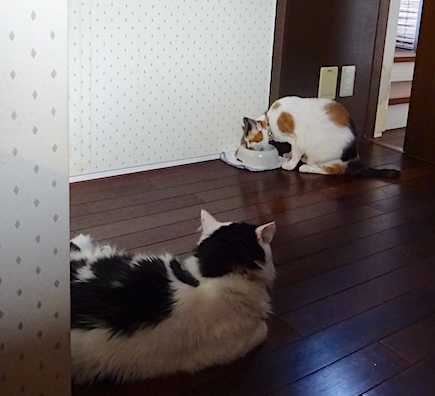 ![]() 8月2日(金) 晴 なみすけが歩くときに カツカツと右前脚の爪の音がするのが気になって わりと切ったばっかりなんだけどなと思いつつ 抱き上げて爪を切ってやる。 多分あまり爪研ぎをしなくなっているなど 年齢でいろいろ変わっているのだと思う。 なみすけが文句のある鳴き方をするのを聞きつけて 文が見に来るのもいつもの事なので なみすけが終わったら続けて文の爪も切る。 文を抱き上げてベッドに座ったら いったん離れたなみすけが 「すっ」と私に近付いて来て すぐそばの枕の横の定位置に丸まったので 「あっなみすけさんが近い。とても近いよ」と 文の気持ちがわくわくとそちらに逸れて わりと楽に爪切りが出来ました。 偶然そういうような雰囲気になったけど なみすけは私に協力してくれようとした わけではないよね。 |