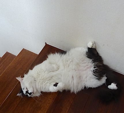 ![]() 8月16日(金) 強い雨 台風7号 昨日は夫が文を混合ワクチン接種に連れて行きました。 ワクチンはいつもの通り御機嫌で打たれて 何の問題もなかったそうなのですが 病院で計った体重が6.8kg、 瞬時に覚悟した私でしたが夫によると 数人居るお医者さんのうち昨日は 大きい猫が好きで比較的体重問題に おおらかなお医者さんが担当で、 「この猫は大きい猫です。 肥満ではないね」と言われたと。 でも6.8kgはやっぱり肥満だと 本当は私は思うのです。 ちょうどドライフードを買う時期だったので サイエンスダイエットのアダルトライト (肥満傾向の成猫用)を注文しました。 文は6.5kgくらいが適正体重じゃないかと 思うのだが、どうか。 |