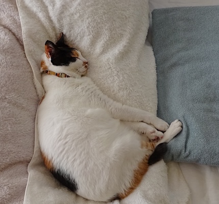 ![]() 8月31日(土) 雨 夜もそろそろ眠る時刻になって 歯を磨いて自分の部屋に戻って来たら なみすけがベッドの上に居なくて、 カーテンの向こう側にもデスク下にも居なくて 地下から順番に探して3階まで行って 最後に夫の部屋をノックして 「なみすけ来てる?」と声をかけたら 「来てるよー」と夫の返事。 居るならいいですと言って部屋に戻って 少し本を読んでから寝る態勢を作っていたら なみすけが鈴を鳴らして 小走りに夜遊びから戻って来た。 なみすけが夜に夫の部屋に行くのはめずらしいね。 |