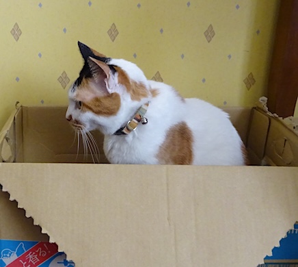 ![]() 9月20日(金) 快晴 文が段ボール箱で荒ぶるのを うるせえなという目で見ていたけれど 文が居なくなった後でひっそりと 箱に入ってみていたなみすけ。 夜にふらっと出掛けたなみすけが 戻って来た気配があったのに すぐにはベッドに乗って来ないで 「かさ」と聞こえるか聞こえないかくらいの音がしたのは さては今段ボール箱に入ったな。 しばらく静かに箱を楽しんだ後で なみすけはいつもの枕の横に戻って もぞもぞと丸まって続きを寝ました。 なかなか片付けられないな。 |