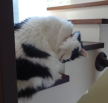![]() 9月25日(水) 曇り 涼しい 朝に1階で文のドライフードと水を出してやると 文が私の足元に座って食べに行かない。 どうしたの食べなさいと声をかけて なみすけの餌皿と水皿を用意して階段を上がると 文が後からついて来て途中で私を追い越して、 上からなみすけと文の 朝の諍いの声が聞こえて来る。 なみすけの皿をいつもの場所に置いて 私がしばらく離れて他の事をして戻ると なみすけが食べ残して去って行った餌皿から 文が食べようとしているので ダメですよと言って皿を届かないところに片付ける。 なみすけさんのはシニアプラス(高齢猫用)で おまえのはアダルトライト(肥満傾向の猫用)なので 文は自分のを食べなさい。 |