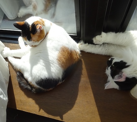 ![]() 11月4日(月) 快晴 さわっている。 晴れて気温もほどよく上がった昨日、 窓際のいい場所で寝ていたなみすけに 並んで文も横になって、 落ち着いたあたりで文が ゆっくりと前脚を伸ばして そっとなみすけの背中に添えた。 なみすけはもちろん気付いているが 暖かくて気持ちがよかったので文を許した。 ひだまりの2匹の猫。 ここに来るまで長かった。 しみじみとなみすけと文を眺める私でしたが 調子に乗った文がなみすけの背中を あやすようにゆっくり 「ぽん、ぽん」と叩き始めたので なみすけが振り向きざまに「ぶしゃー」と凄んで なごやかな時間は終わりを告げました。 短かった。 明日から札幌です。 |
