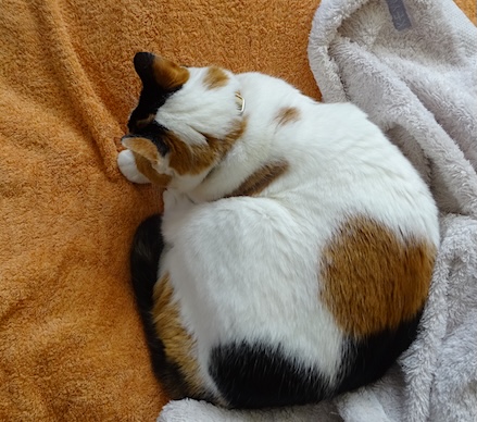 ![]() 12月18日(水) 快晴 「さーてもう寝ようかな、 おまえどうせ夜中にふとんに入って来るでしょ、 今入んなさい今。一緒に寝よう。暖かいよ」と 抱き上げて強引にふとんに突っ込む私に 「ぎゃー」と鳴いて抗議したなみすけでしたが 「ぎゃー。ぶぎゃ。ぶ。ぶぶぶぶ」と ふとんの中から聞こえるくぐもった声が 文句から滑らかに移行して なみすけは半周回るようにしてから もぞもぞと丸まって 自分にいい位置を確保しました。 悪くないねえ。 |