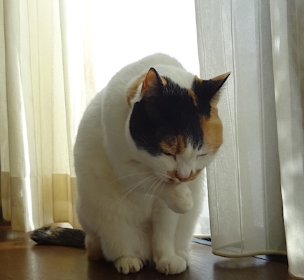 ![]() 12月21日(土) 快晴 なみすけがやって来て サイドキャビネットに飛び乗って 私の方を向いて座る。 さっき食べたばっかりだからこれは 「何かひとくち食べたいなみすけ」ではなくて 「膝に乗りたいなみすけ」だなと 背中から手を回して抱き上げると 怒りの声を上げたなみすけは 私の手を踏みにじり膝を蹴って飛び降りて そのまま走り去りました。 「ただそこに座っていたいだけのなみすけ」という パターンもあるらしい。 難しいな。 |