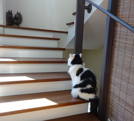 ![]() 2月5日(水) 快晴 電気設備安全点検の日だったのでございます。 よその人が入って来たのにびっくりして 文は地下の秘密の隠れ場所 (夫の楽器ケースや猫砂の箱の隙間)に あわてて逃げ込んだのですが ああなんという事でしょう、 我が家の分電盤は地下なのです。 夫が点検の人と階段を降りて行って 数秒後に何かがぶつかるような大きい音がして カッシャカッシャと爪を鳴らし 足を滑らせ毛を撒き散らしながら 文が階段を駆け上がって行きました。 文が居るのに気付いていなかった夫も 点検の人もとても驚いて、 点検の人は思わず「すみません」と口走ったそうです。 もちろん点検の人はまったく悪くありません。 うちの猫が大変失礼をいたしました。 |