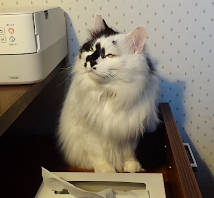 ![]() 2月19日(水) 快晴 ついさっきまでなみすけが ひとくちおやつを食べていた サイドキャビネットに飛び乗って なにか考えているような顔をする文。 文のおやつは1日1回に決まっているから そこに座っても出ないんだけれども、 それでも腹具合が普通になって ドライフードを消化器サポートから アダルトライトに戻したので 1日のグラム数も見た目の量も前より増えて それほど空腹感はないのではないかと思う。 よかったね。 |