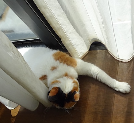 ![]() 3月8日(土) 曇り 夜中にベッドの足の方から飛び乗って ぶぶぶと小さい音を立てながら なみすけがやって来たので 撫でてやろうと手を伸ばすと 近付いて来たなみすけの髭が一瞬さわって すっと気配を消したと思うと 次の瞬間手の横側の思わぬ方向から すごい勢いの頭突きをくらった。 びっくりして思わず「おう」と声を上げたが なみすけは喉を鳴らし続けて さらに御機嫌なのだった。 なみすけは何がやりたいのかな。 |