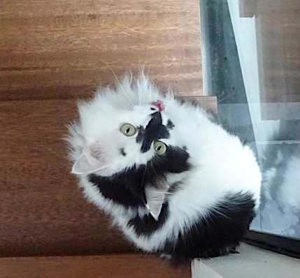 ![]() 4月15日(火) 快晴 ゆっくりと階段を降りて来た文の脇腹に ごみがついているなと思ってよく見ると 小さいハエトリグモが もしゃもしゃした毛にくっついて 一緒に降りて来ているのだった。 ティッシュを持って来て落としてやりましたが 文、おまえはハエトリグモに タクシー代わりに使われていますよ。 |