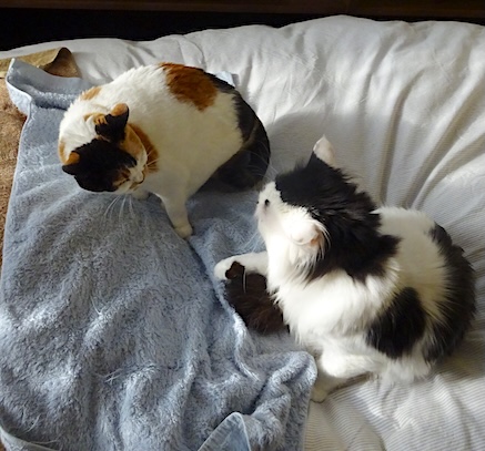 ![]() 5月8日(木) 快晴 なみすけと文、今日の午前6時。 ------------------------------------ 猫の換毛期は続く。 「はいーふとんカバー換えるよー」と 声をかけると同時かフライング気味に ふとんを持ち上げて2匹の猫を吹っ飛ばすと 面倒はごめんよとばかりに 部屋を飛び出すなみすけと 勢いのまま段ボール箱に飛び込んで 猛然と箱のフタと戦い始める文。 盛大に舞った猫毛が輝く朝。 我が家はなかなか活気があるなあ。 |
