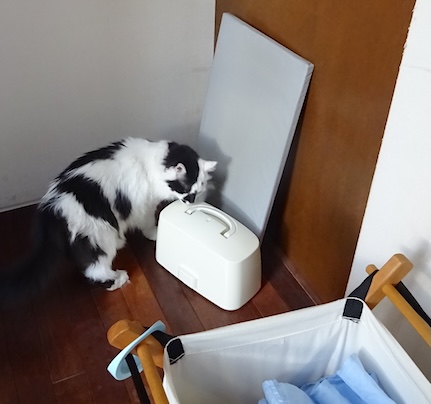 ![]() 12月2日(火) 晴 1階でアイロンをかけ始めると 文も階段を降りて来て アイロン台の上でばふっとひっくり返した 夫のシャツを反対側から押さえたり テーブルからはみだして下がっている 夫のズボンのウエストのひもを引っ張ったり アイロンをかけおわったものに乗って 念入りに7キロプレスをかけて毛をつけたり。 自分の服だったらやめなさいと言うけれど、 全部夫の服だし文も楽しそうだからまあいいわね。 |