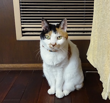 ![]() 12月25日(木) 曇り まだ暗い5時半頃に 腕を伸ばしてリモコンで暖房を入れる。 少しして暖かい風の吹き出す音が聞こえ始めると ふとんの上で静かに重量が移動する。 そろそろ起きようと思って 壁の照明のスイッチを入れると エアコンに背中を押しつけるようにして座っている 真顔のなみすけと目が合う。 短毛で寒いのが苦手ななみすけは、 多分室温は30度くらいが ちょうどいいと思っています。 |