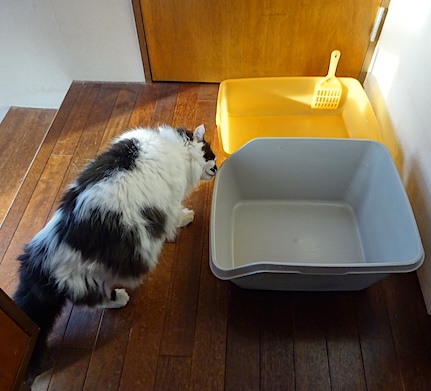 ![]() 1月2日(金) 快晴 猫が2匹とも昼寝をしているのを確かめて 静かに猫トイレを洗面室に運び、 洗面室の扉を閉め鍵をかけ バルコニーへの扉を開け放って 外で猫トイレを洗い 古タオルで拭き上げて 洗面室の扉を開けたら やっぱり文が扉の向こうに びしっと正座していて私を見上げた。 はいはい、今返すから。 |