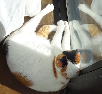 ![]() 2月16日(月) 快晴 なみすけは一日のうち多くの時間を 私の部屋で寝ているので ときどき私の部屋に立ち寄って なみすけに挨拶をするようにしている夫。 昨日は昼飯の前に部屋をのぞくと なみすけが日の当たる場所ですっかり眠っていて 「なみちゃん」 「なみすけおはよう」と声をかけたけれども 聞こえているのになみすけは 目を開ける事すらしなくて 数秒ののちに尻尾だけが ほんのわずかに持ち上がって 「ぱた」と面倒くさそうに落ちたそうです。 |