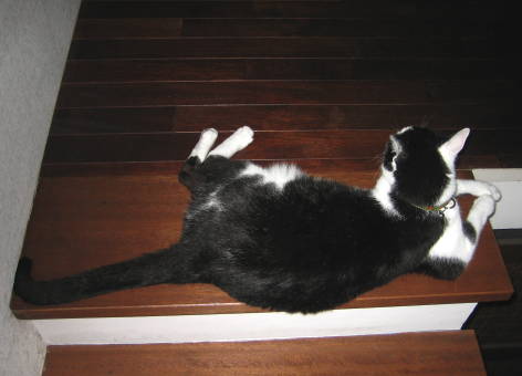 ![]() 7月18日(土) 曇り 猫通行止め中先生。 ------------------------------------ 冷蔵庫にビールを補充しようと 地下室から運んで階段を上がる途中で キッチンから脱兎の如く飛び出す猫目撃。 うちはキッチンは猫出入り禁止なので ビールを置いて私も階段を駆け上がる。 しかし逃げた猫がこちらをちらりと振り返った後 2階で簡単に追いつめられて、首のあたりを押さえると うっとりとも見える表情でデコピンを待つそぶり。 イヤな猫だな! |