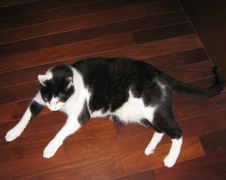 ![]() 8月11日(土) 快晴 これまで餌皿を洗う間 キッチンの入り口に正座して こちらを凝視して待っていた猫が 最近はそのわずかな時間を利用して 床にびろーんと広がって体表から熱を逃がしている。 おまえもさすがに暑いのね。 今、お気に入りに登録している 杉並区の天気予報をみたら 今日の最高気温が37度になっていますが 本当ですか。 |