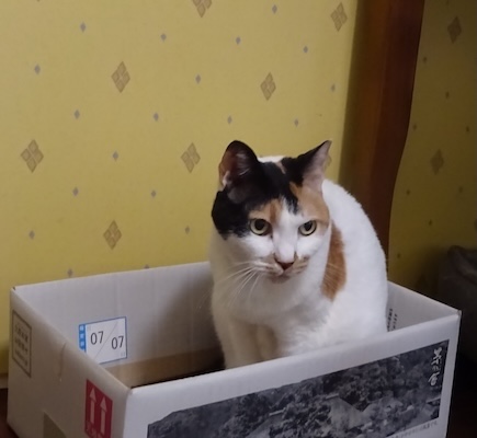 ![]() 10月4日(土) 晴 文に人生何度目かの 居間のランドリーボックスに入るブーム。 自分でフタを開けて入るのには技術が要るので もうすっかりあきらめて、 近くに居る人間に 尻尾を立ててすり寄って 中くらいの声で鳴いて フタを開けて欲しい気持ちを表現する文。 しかしフタを持ち上げてやると たいていはすぐに飛び込むのだが 「あ、入ろうかな」 「どうしよっかな」 「迷うなー」と長考に入る事もときどきある文。 入るなら早く入りなさい。 私もそこまで暇ではないのです。 |