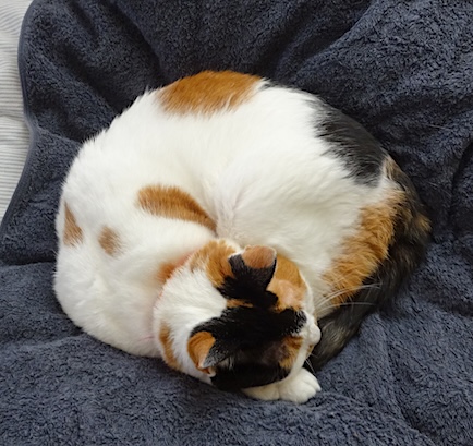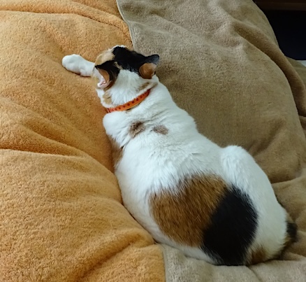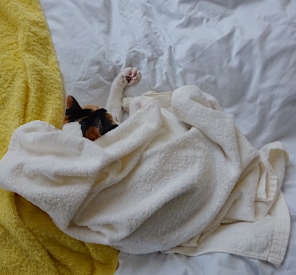 ![]() 10月12日(日) 曇り 昨日の朝、いつものように 餌を食べ水を飲み終わって ベッドに飛び乗ったなみすけが 軽くふとんと猫タオルを掻く仕草をして 私の方をを振り返った。 私を見つめてなみすけが 「ニャ」と短く鳴いた。 少し置いてもう一度なみすけが 「ニャ」と鳴いた。 ベッドのところまでまで戻って行って タオルを持ち上げてなみすけを軽く包んでやった。 「寒いのでタオルをかけて寝たいです」 となみすけは言った。 私にはわかった。 |