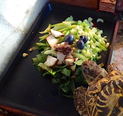 ![]() 1月5日(月) 快晴 亀の水皿をさっと洗って 新しい水を入れてやる。 餌皿を水槽の奥に置くと 亀が動く人間(私)の方を見ているので 甲羅を軽くつついて方向を変えてやると ちょっと頭と前足を縮めるが 驚くというほどでもなく すぐに餌に気付いて食べ始める。 世話をする人間が変わっている事を 亀は気付いているでしょうか。 野菜の切り方がいつもより上手だと思うのよ。 昨日の亀餌 ・小松菜 ・蕪の葉っぱ ・椎茸 ・ブルーベリー |