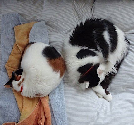 ![]() 1月8日(木) 快晴 なみすけと文が寝ている。 わずかながら背中が触れている。 文が来てだいたい5年半、 ここまで長かったと思って 静かに写真を撮りましたが 文はその後何かやっては やっぱりなみすけに怒られたり断られたりしていて なみすけと文の仲がよくなったというほどでもなく なかなかそう簡単にはいかないのだった。 |
