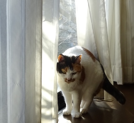 ![]() 1月13日(火) 快晴 文の体重が少し減った。 とはいえ6.7kgから6.8kg、 まだまだ油断は出来ないのですが これまで1日2回で合計60gだった 朝晩の餌を少し減らして代わりに 午後に少しだけおやつをやる事にして 合計で65gくらいで体重維持、と 1g単位の勝負をやっているのですが 昨日はおやつをやろうと思ったところに ちょうど夫が帰宅したので 「文におやつ出してやってー」と 階下に向かって声をかけると 「おう」と答えた夫が急にひそひそ声になって 「ブンタ、おやつだ。来い、早く」と 文をせかして一緒に居間に向かった。 なぜ私には秘密みたいな雰囲気を出すのですか。 |
